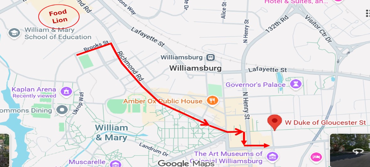 The route is 1.5 to 2.0 mile long and ends at W&M law school parking lot (See Map Above)